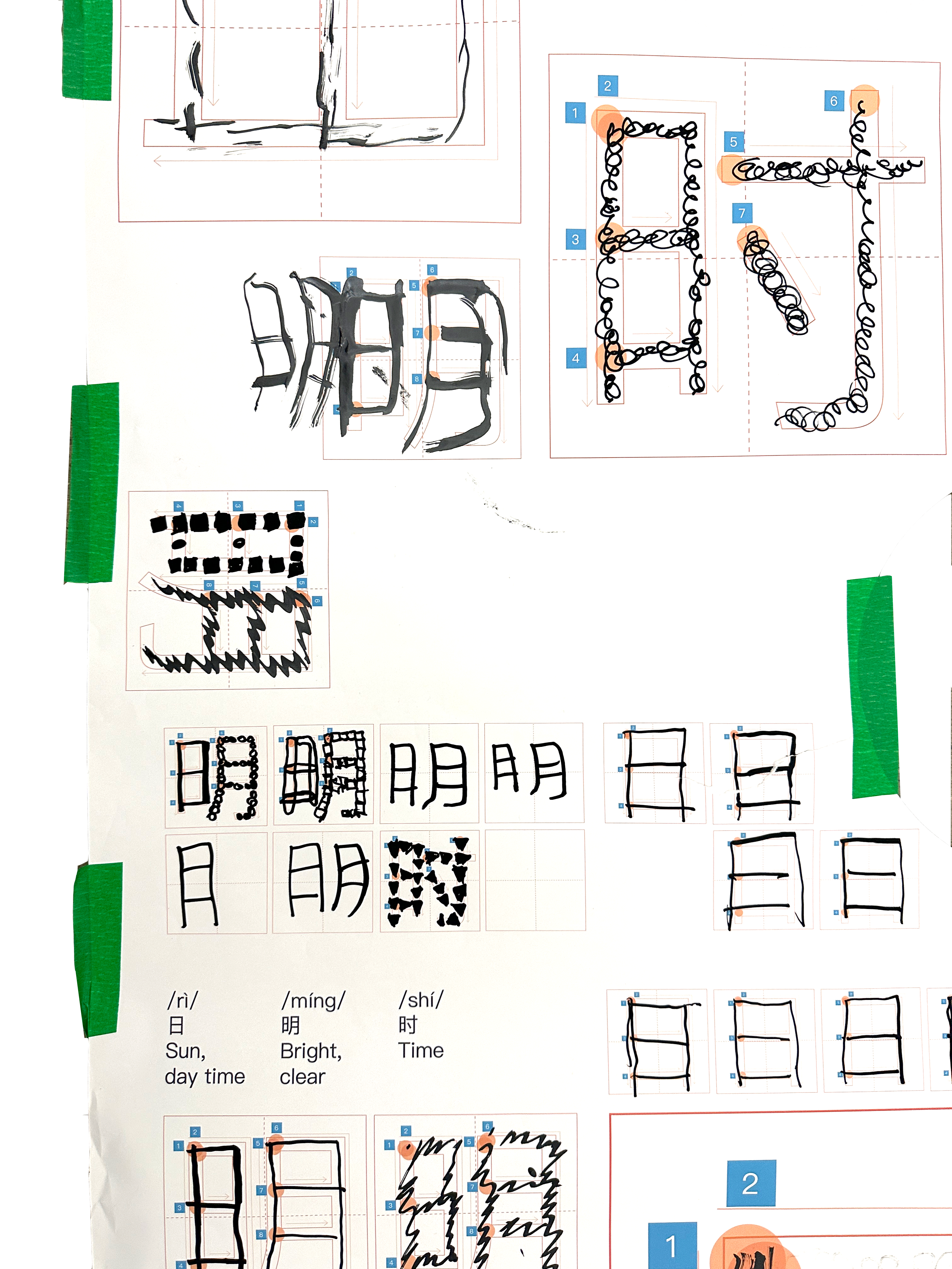 During the workshop, participants explored the relationship between the body and Hanzi (Chinese characters) through a series of hands-on exercises to create collaborative, wearable posters. Participants practiced writing Hanzi at a large scale by making a human-proportioned poster. Together, they explored how embodied making can inform collective publishing. How can embodied making create a space for collective exchange and expression? What does collective publishing look like through collaborative labor in a shared space and time? What are the ways that we can examine the boundaries between bodies and print, typography and space, and the individual to the collective?
