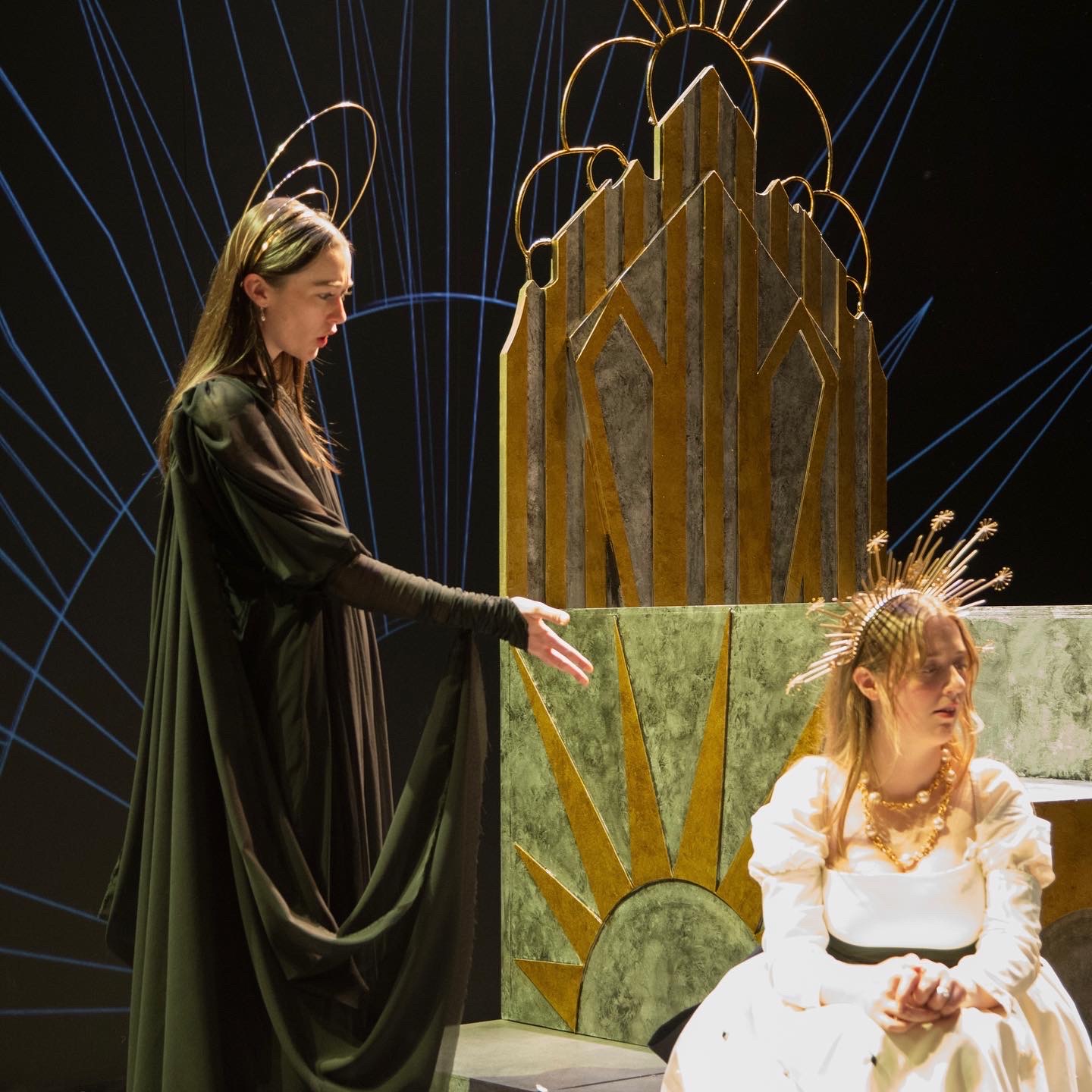 Animated interactive live play designed by Chen Luo and Arjun Kumar. In this theatre play, we visualized and executed the animated graphics on the screens and floor of the set for School of Theatre and School of Visual Art and Center for Data and Computational Sciences at BU. These visualizations started off as representing architectural elements in the play. But as the play progresses these dynamic elements morphed and changed to embody the psychology of the characters, especially the King. Behind this theatrical project was also a technical one, driven by visiting artist Paolo Scoppola. Paolo created the Random Act software that generated interactive graphics that changed on the basis of the input/acting of the actors.
