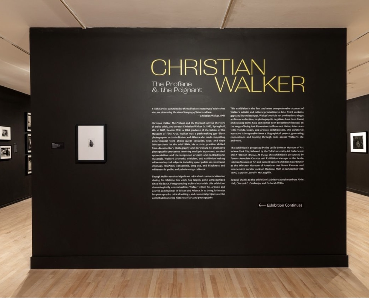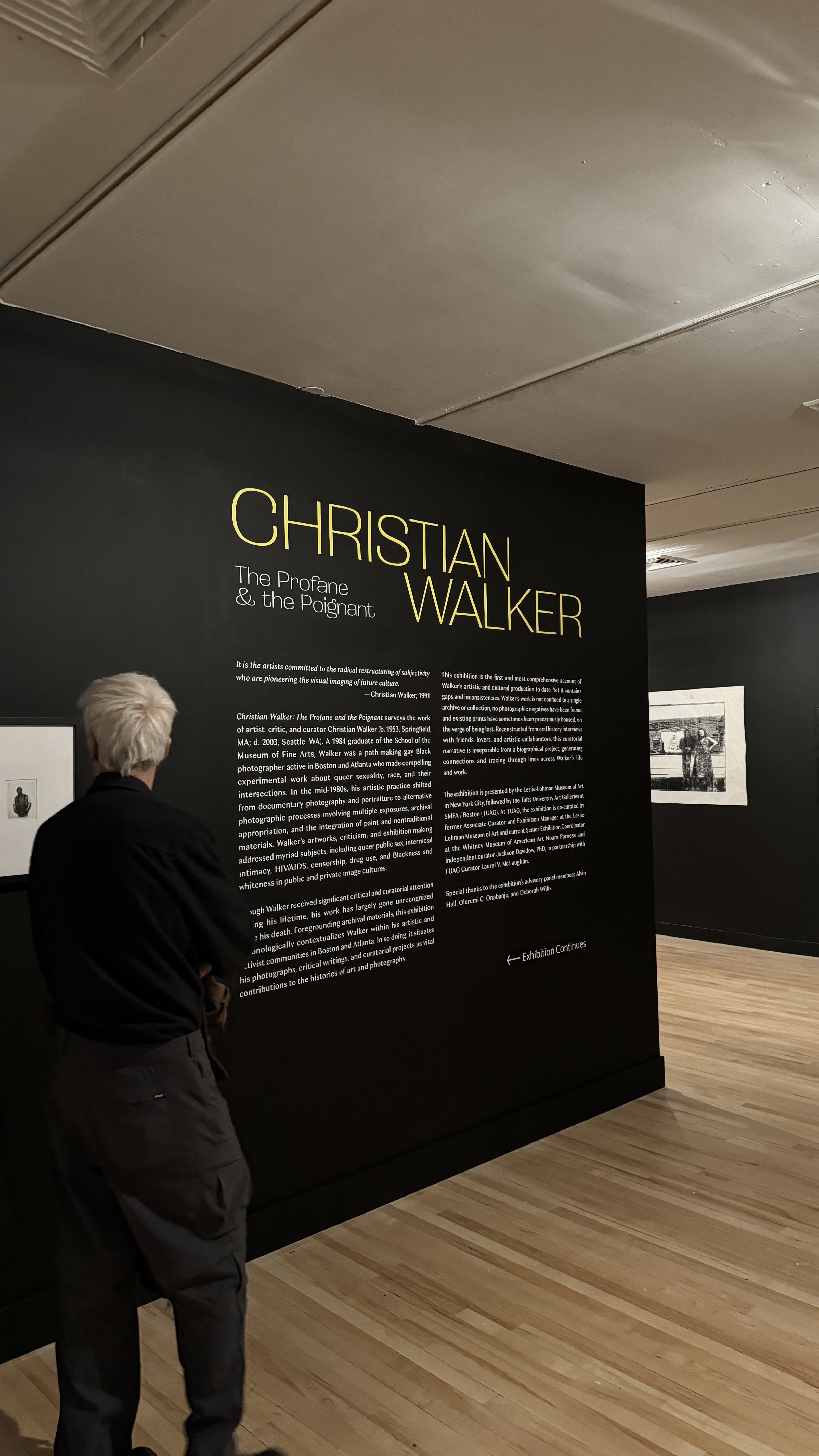 Design assets include the title wall, brochure, signage, and window walls. Christian Walker: The Profane and the Poignant surveys the work of artist, critic, and curator Christian Walker (1953–2003). As the World Burns: Queer Photography and Nightlife in Boston” accompanies Christian Walker’s work and explores the relationship among community photographic practices, queer nightlife, and gay liberation in Boston.